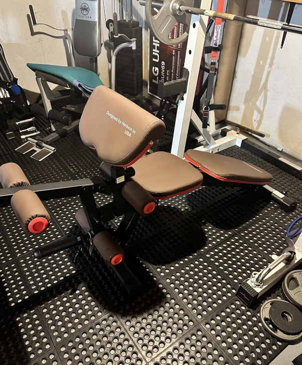 I swapped out my bulky black bench for this brown one, and wow—what a difference. It fits seamlessly with my décor, and the padding feels genuinely comfortable. But it’s not just a pretty face: this bench is built tough. I’ve been doing heavy dumbbell presses and leg curls, and it hasn’t flinched. The quick‑release pins for adjustment are intuitive and solid. It’s rare to find a bench that looks this good and works this well. Totally worth it.